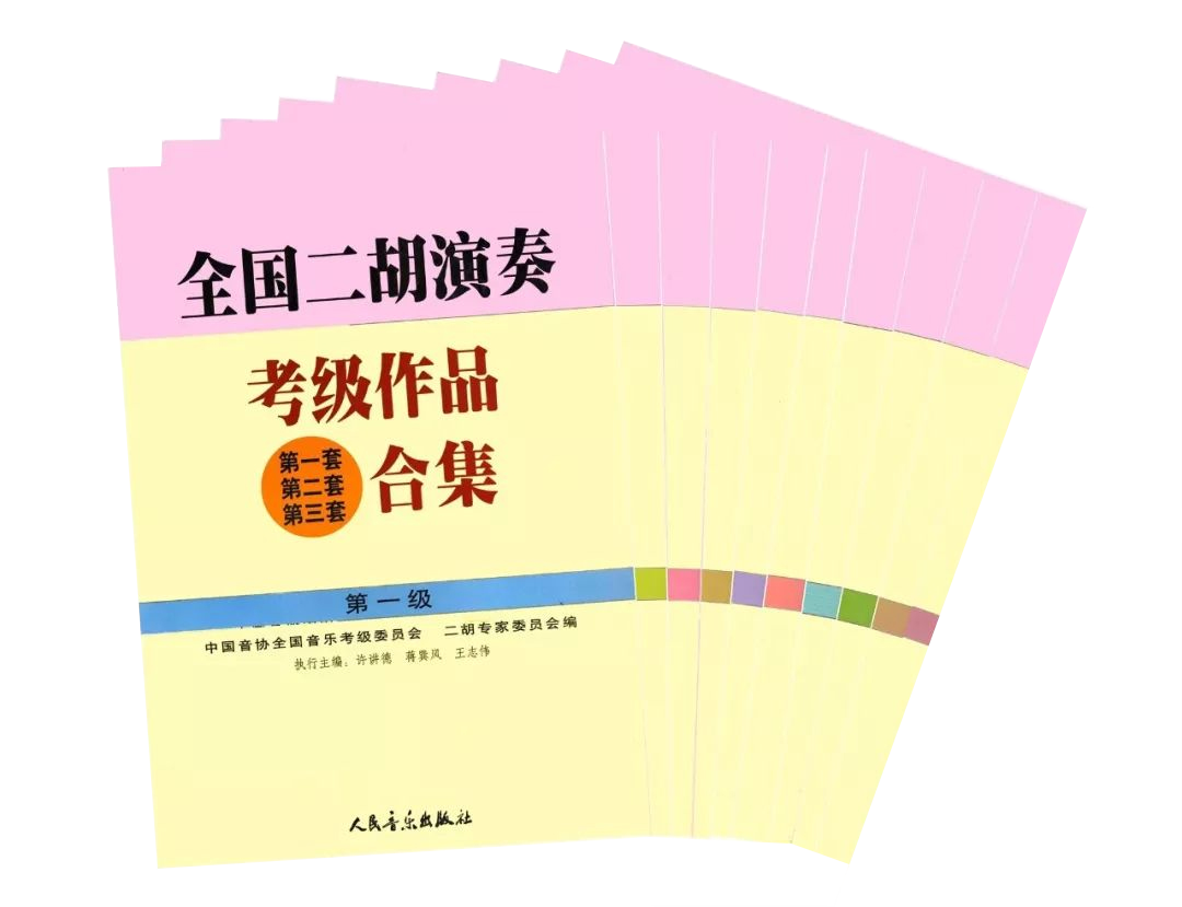 《全国二胡演奏(业余)考级作品集》第一套、第二套、第三套及第四套,均可在考级中使用。考生既可选用某一套作品集的某一个级别应试,也可以在这四套作品集同一级别的曲目中交叉选用应试。