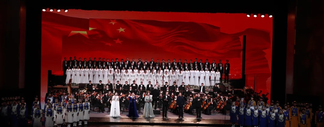 音乐会高潮迭起,中央歌剧院合唱团的艺术家们带来了选自意大利作曲家威尔第的歌剧《游吟诗人》第二幕的《铁砧之歌》和新疆民歌《青春舞曲》,不仅展示了中央歌剧院合唱团高超的演唱技巧,也体现了他们对不同音乐风格的精准把握和完美演绎。歌唱家王丽达以深情而富有感染力的歌声精彩演绎了《等上一辈子》《黄河渔娘》,深深打动每一位听众的心灵。歌唱家戴玉强深情演唱了两首脍炙人口的经典曲目——《在那遥远的地方》和《我爱你中华》,激发起全场观众的爱国情怀。紧接着,《黄河大合唱》第七乐章《保卫黄河》点燃了整个会场的氛围。最后,全体演员出场,合唱《我和我的祖国》,将音乐会推向高潮。在这一刻,台上台下融为一体,共同表达了对祖国的无限热爱和美好祝福。