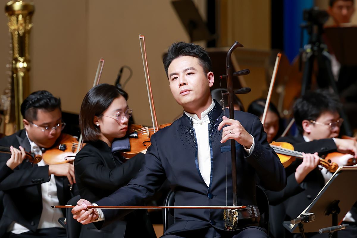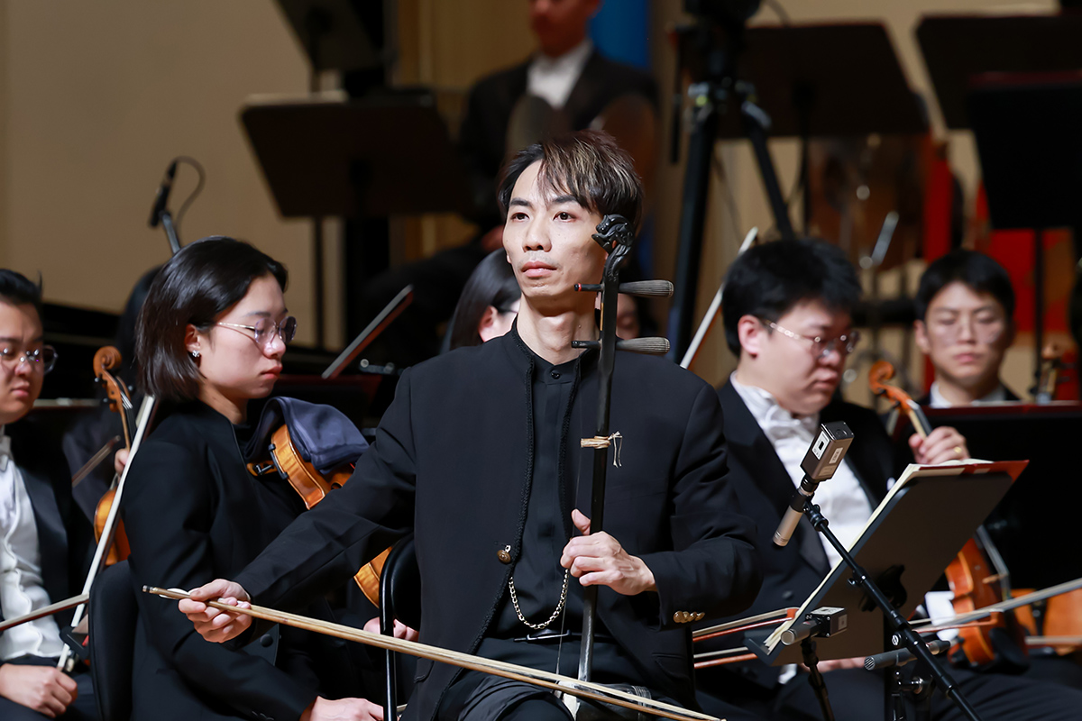 音乐会在青年二胡演奏家李超带来的《楚颂》(节选)中拉开帷幕。随后,由青年板胡演奏家胡瑜带来《乱弹琴声》(节选)、青年二胡演奏家王啸演绎的《阿曼尼莎》(节选)、青年艾捷克演奏家穆塔力甫·麦麦提带来的《亚茹》与《新疆之春》、青年二胡演奏家黄晓晴演绎的《第五二胡狂想曲——赞歌》(节选)、青年高胡演奏家余乐夫带来的《踏雨心晴》、青年二胡演奏家章海玥带来的《第六二胡狂想曲》(节选)逐一上演。二胡、板胡、艾捷克、高胡等多种民族乐器的经典管弦乐协奏作品集中呈现,充分展示了我国民族音乐的多元风格与独特魅力。